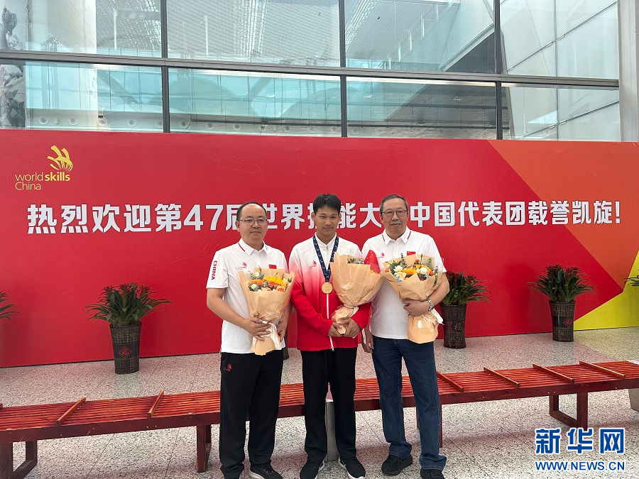 段宜宏(左一)参与世赛项目载誉凯旋(资料图)。