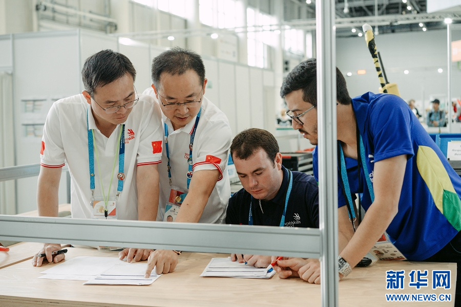 段宜宏(左二)参与世赛项目翻译(资料图)。