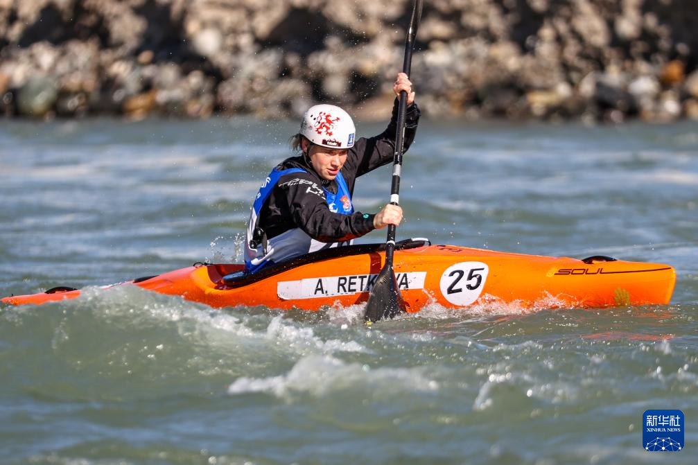 12月20日,捷克选手安娜·雷特科娃在比赛中。最终,她获得专业组女子单人皮艇短距离赛第一名。新华社记者 彭奕凯 摄