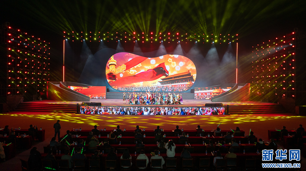 航拍主题晚会现场(12月22日摄)。新华网发(刘东 摄)
