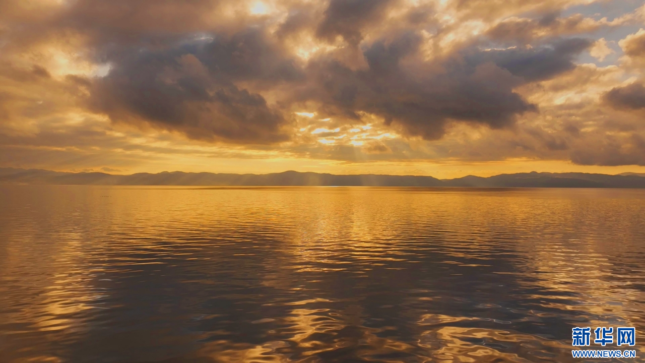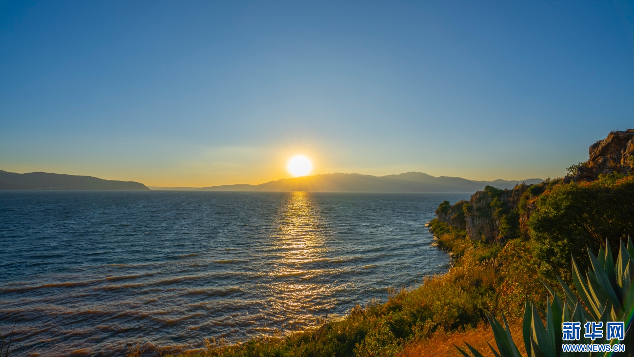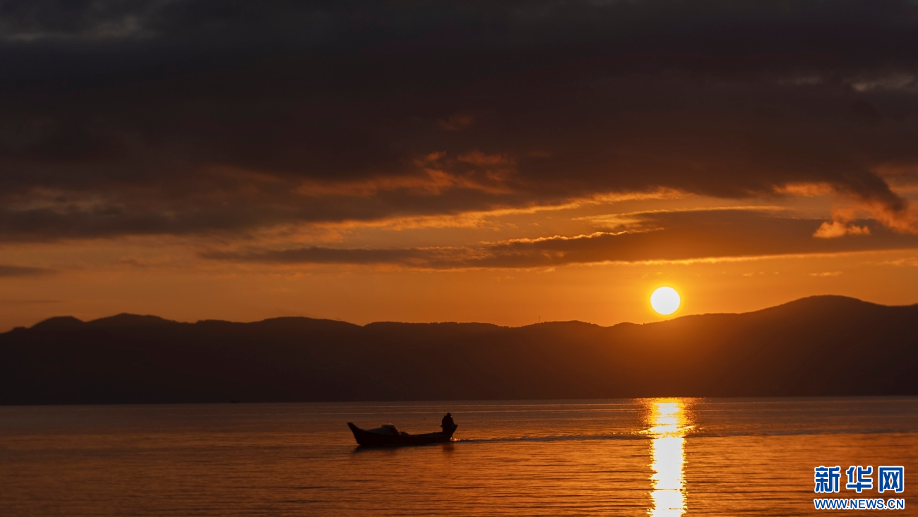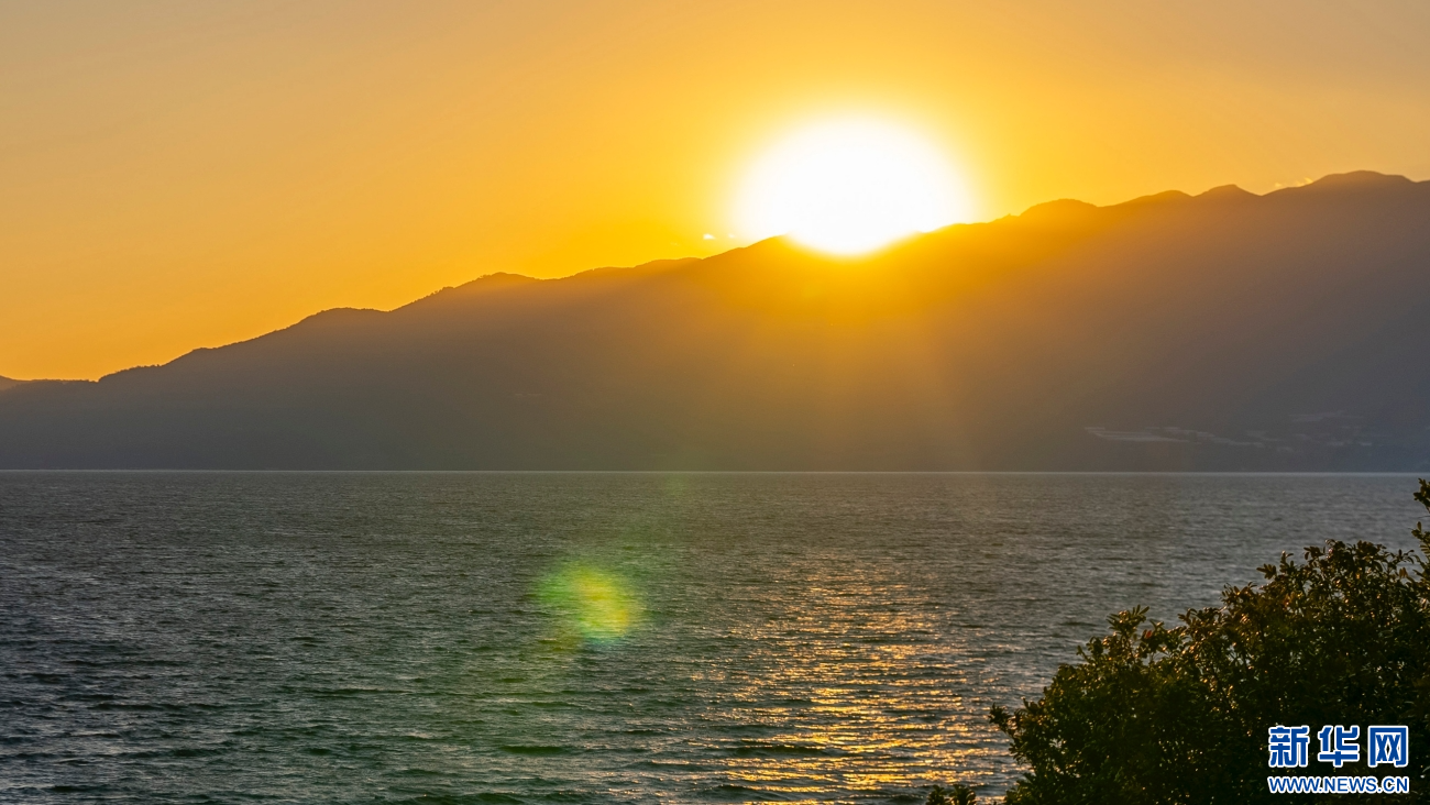 抚仙湖日落美景(12月23日摄)。新华网发(谢罗凯 摄)