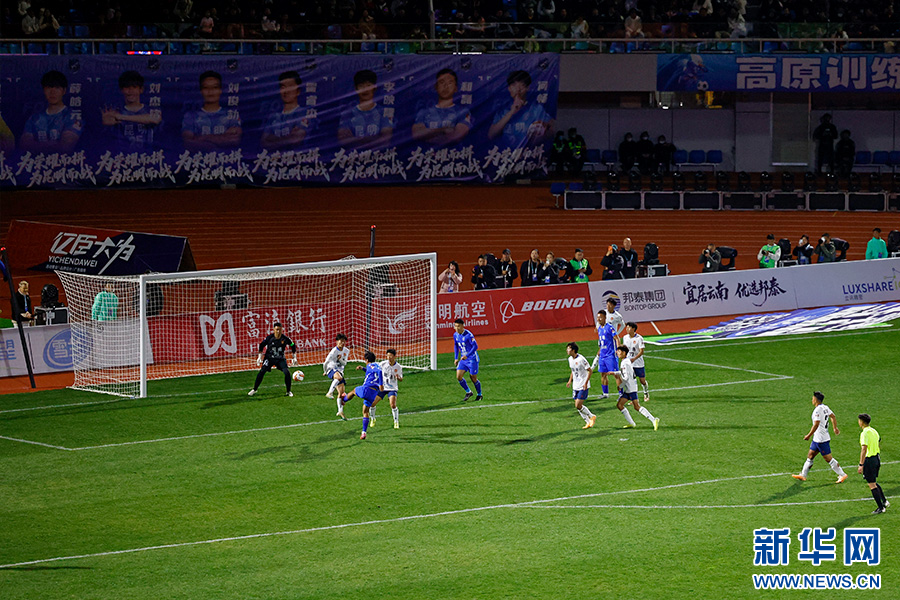 昆明队进球瞬间(12月27日摄)。新华网发(杨桢宇 摄)