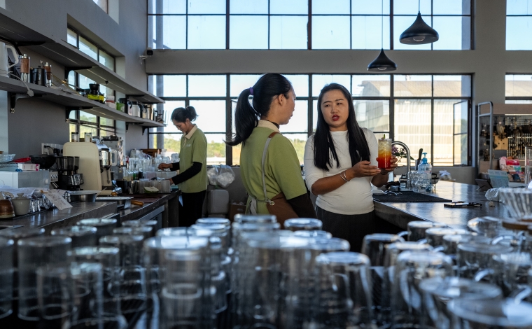 昆明队队员在帮助昭通队队员(12月27日摄)。新华网发(杨桢宇 摄)