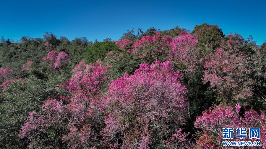 邦瓦山古树樱花谷樱花盛放(12月27日摄)。新华网发(孔扎选晶 摄)