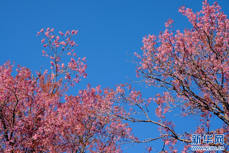 邦瓦山古树樱花谷樱花盛放(12月27日摄)。新华网发(段宗智 摄)