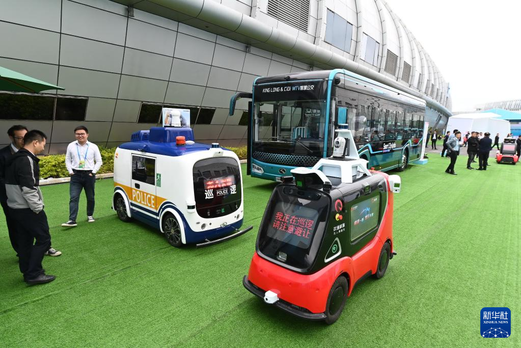 4月26日在第六届数字中国建设成果展览会上拍摄的多种智慧车辆。新华社记者 林善传 摄