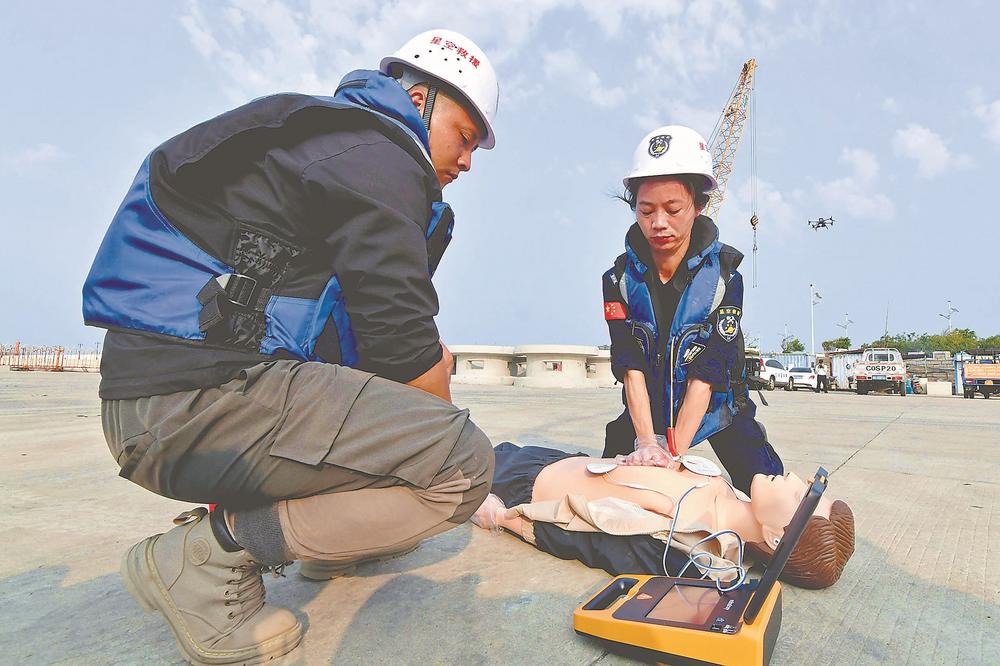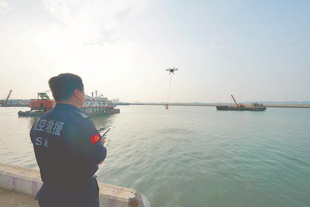 近日,泉州市泉港区峰尾镇海岸救援志愿服务中心揭牌成立并举行海上救援演练活动,演练项目包括橡皮艇O型水上救援、心肺复苏、无人机定点抛投救生圈等。