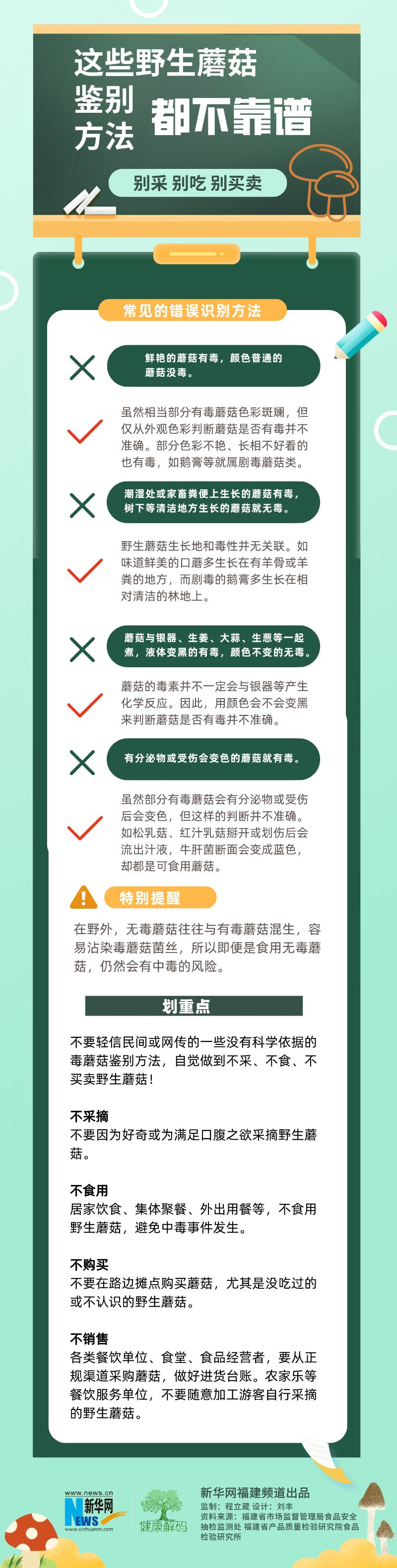 新华网福州5月16日电(刘丰)立夏后,气温攀升、雨量充沛,野生蘑菇进入生长旺盛期。很多人喜欢外出时采摘一些野蘑菇带回家吃,但如果没有专业的辨别经验,尝鲜也是“尝险”。许多野生毒蘑菇和可食用蘑菇从外观上看非常相似,即使是专家也需要借助显微镜等工具才能准确辨别。近日,福建省市场监督管理局食品安全抽检监测处、福建省产品质量检验研究院食品检验研究所发布安全提示,大家千万不要轻信民间或网传的一些“识菇秘籍”,做到不采、不吃、不买卖。