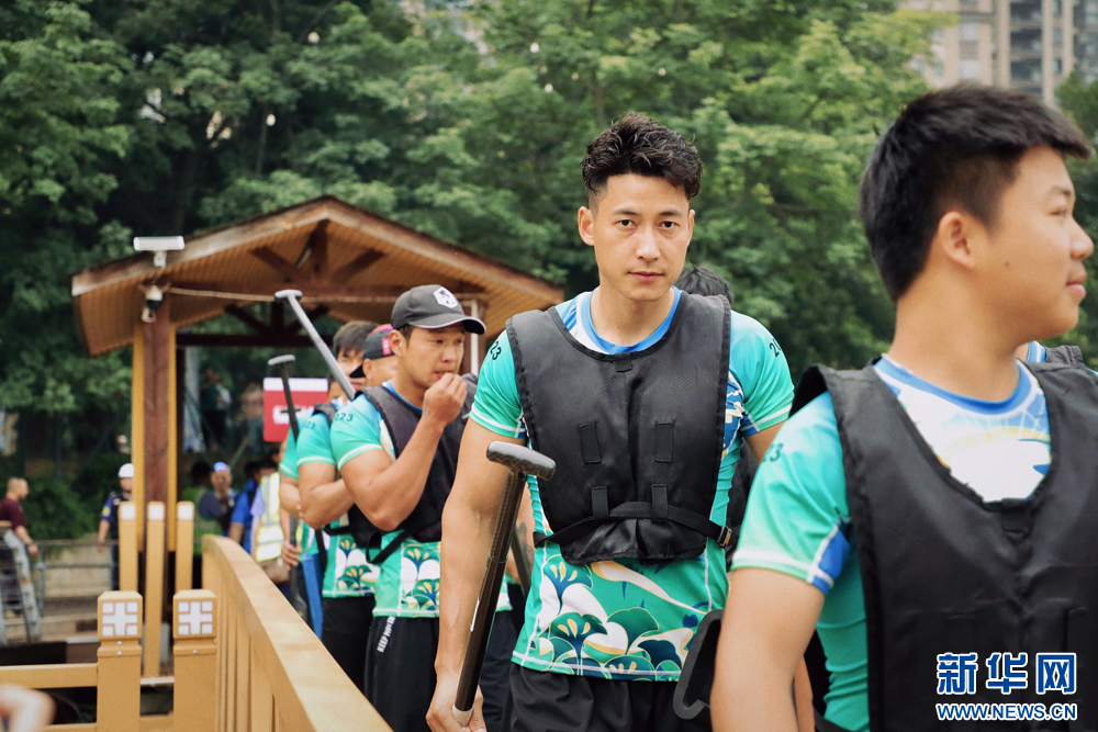 队员们于整齐划一的口号声中劈波斩浪。新华网发(蔡利君 摄)