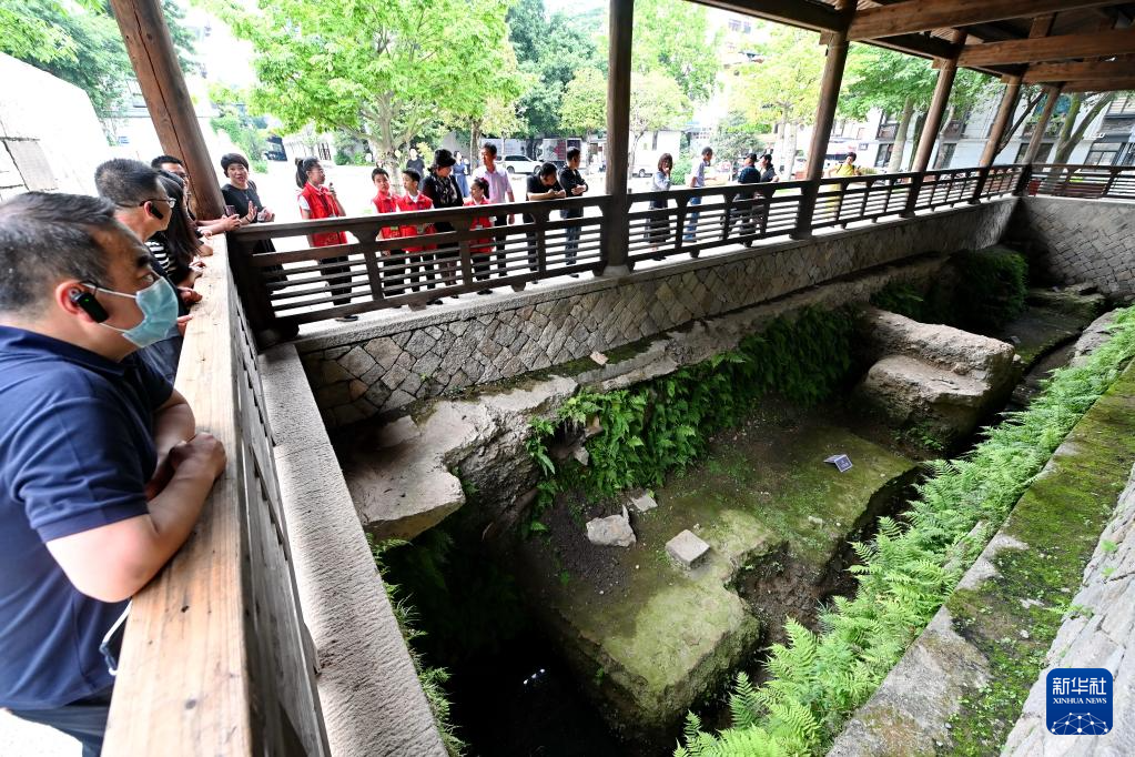 游客在福州冶山春秋园的考古发掘区唐代马球场遗址参观(5月16日摄)。新华社记者 林善传 摄