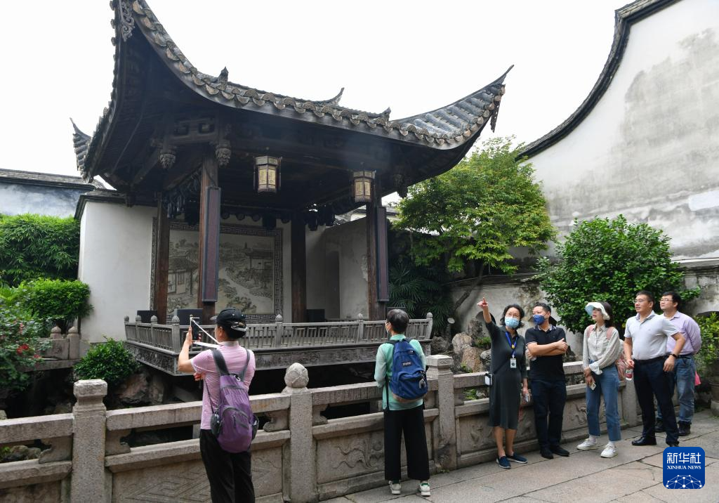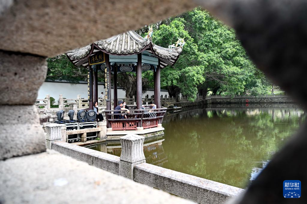 游客在位于福州三坊七巷历史文化街区的全国重点文物保护单位水榭戏台参观(5月16日摄)。新华社记者 魏培全 摄