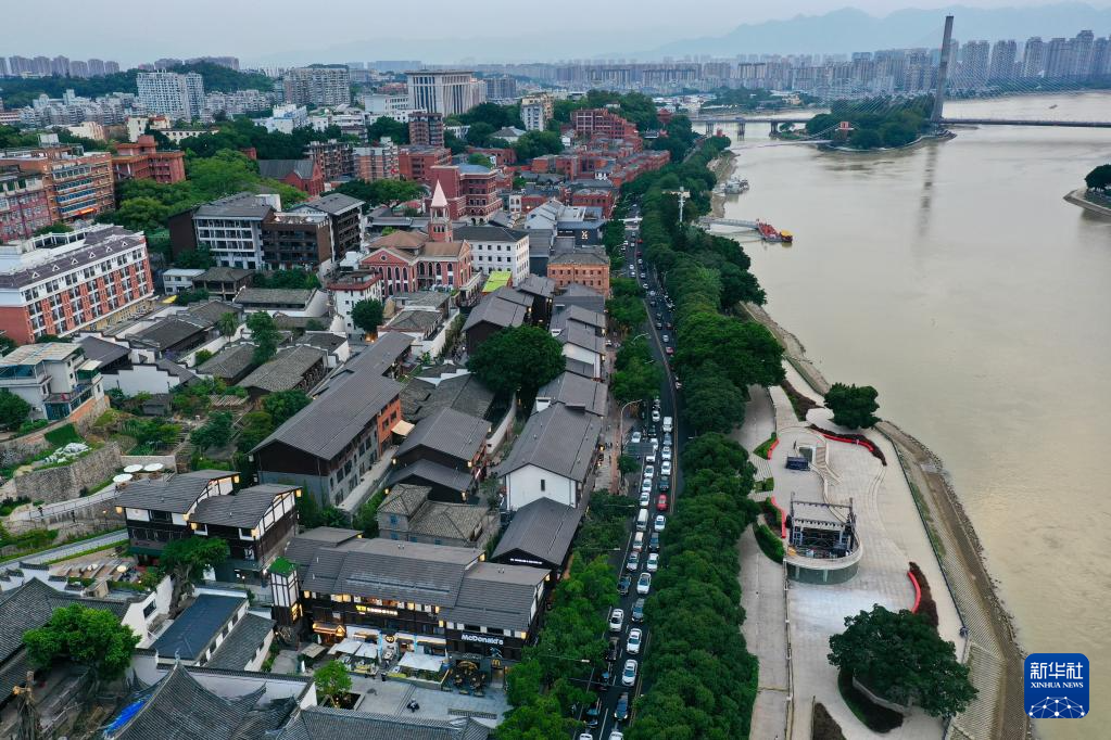 游客在位于福州马尾的中国船政文化城参观(5月16日摄,无人机照片)。新华社记者 姜克红 摄