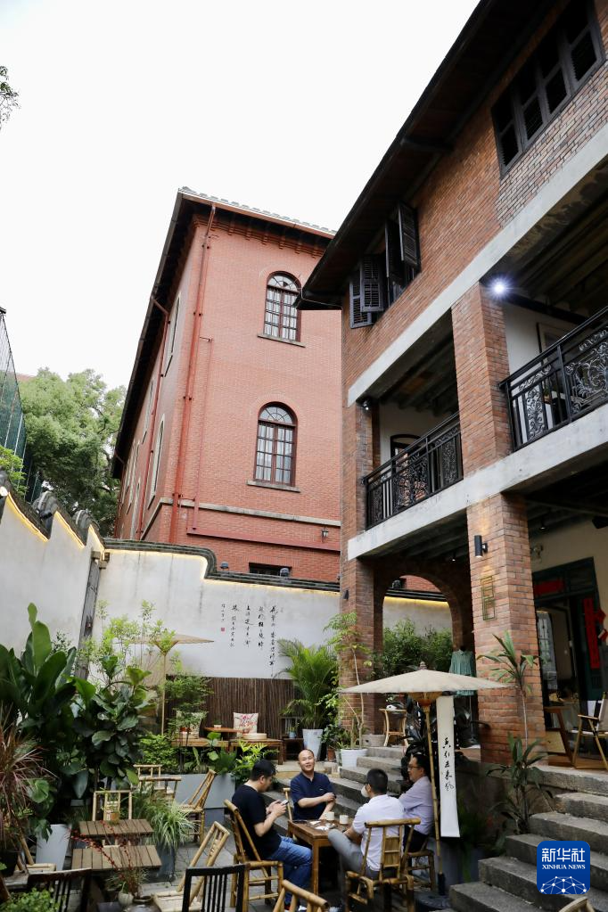 游客在福州烟台山历史风貌区古厝咖啡馆内休闲(5月16日摄)。新华社记者 姜克红 摄