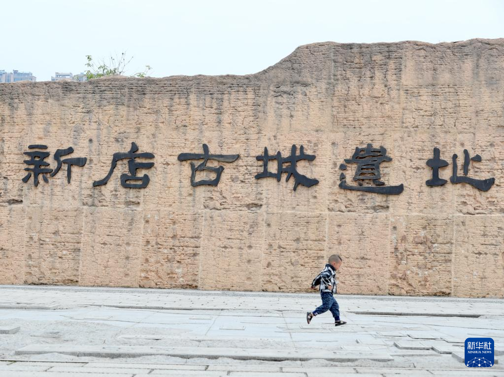 孩子在福州新店古城遗址公园城墙前玩耍(5月16日摄)。新华社记者 姜克红 摄