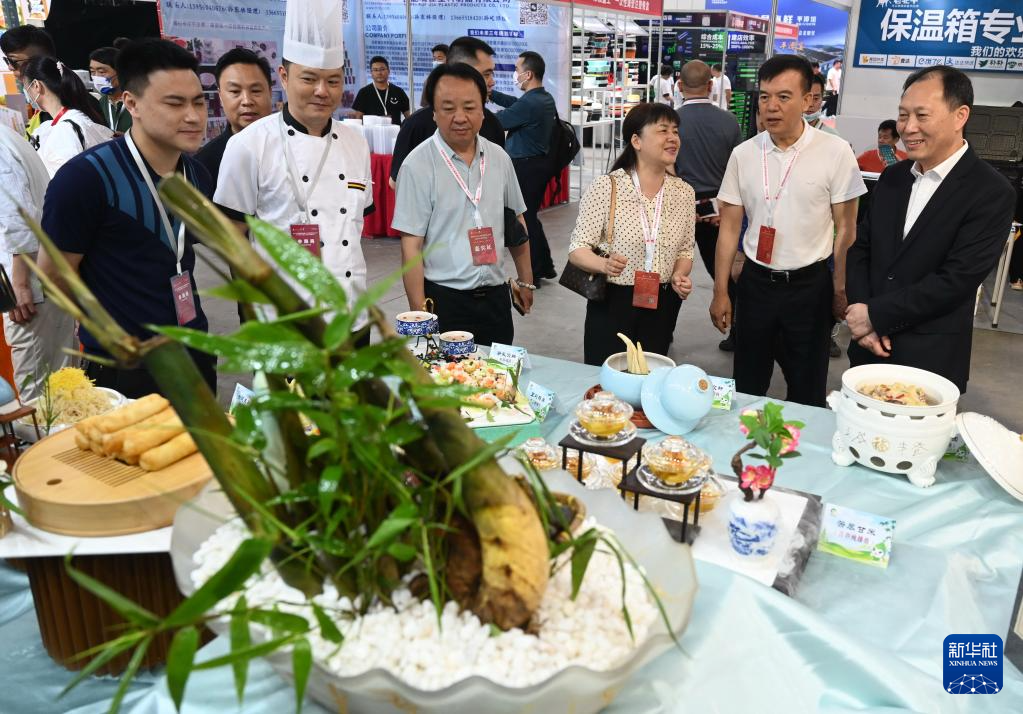 5月18日,参观者在2023福建八闽文化主题宴席“建州笋宴”展位前参观。新华社记者 林善传 摄