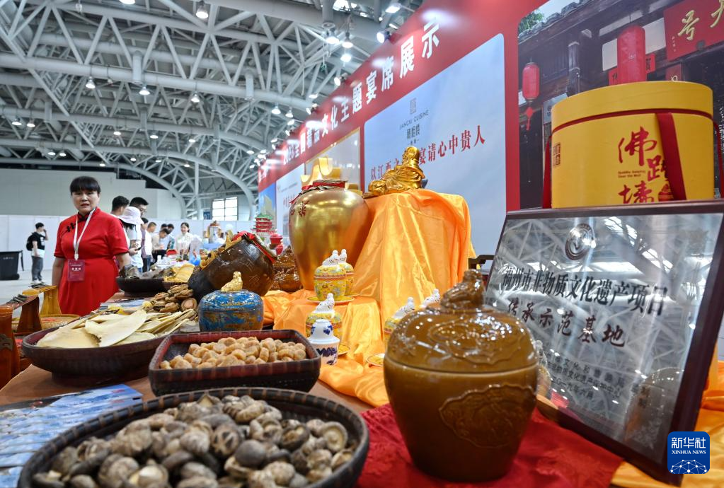 5月18日,在2023全国精品文化主题宴席展区拍摄的福州佛跳墙展台。