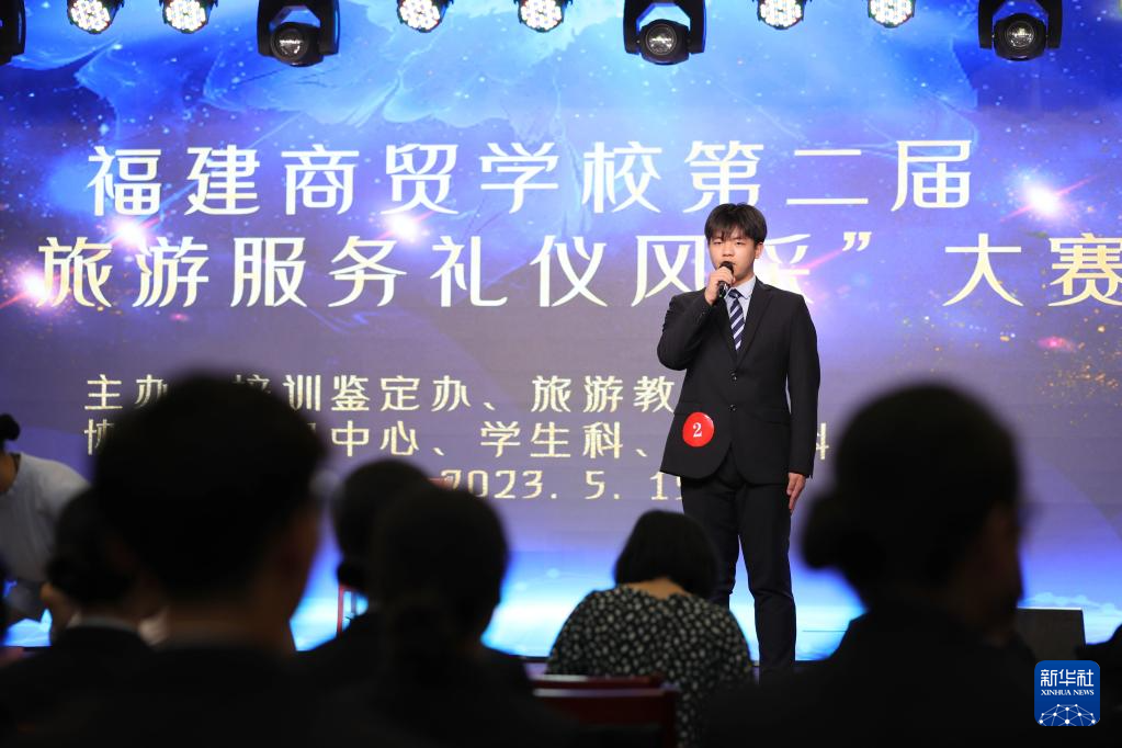 5月19日,福建商贸学校学生在进行旅游服务礼仪比赛。