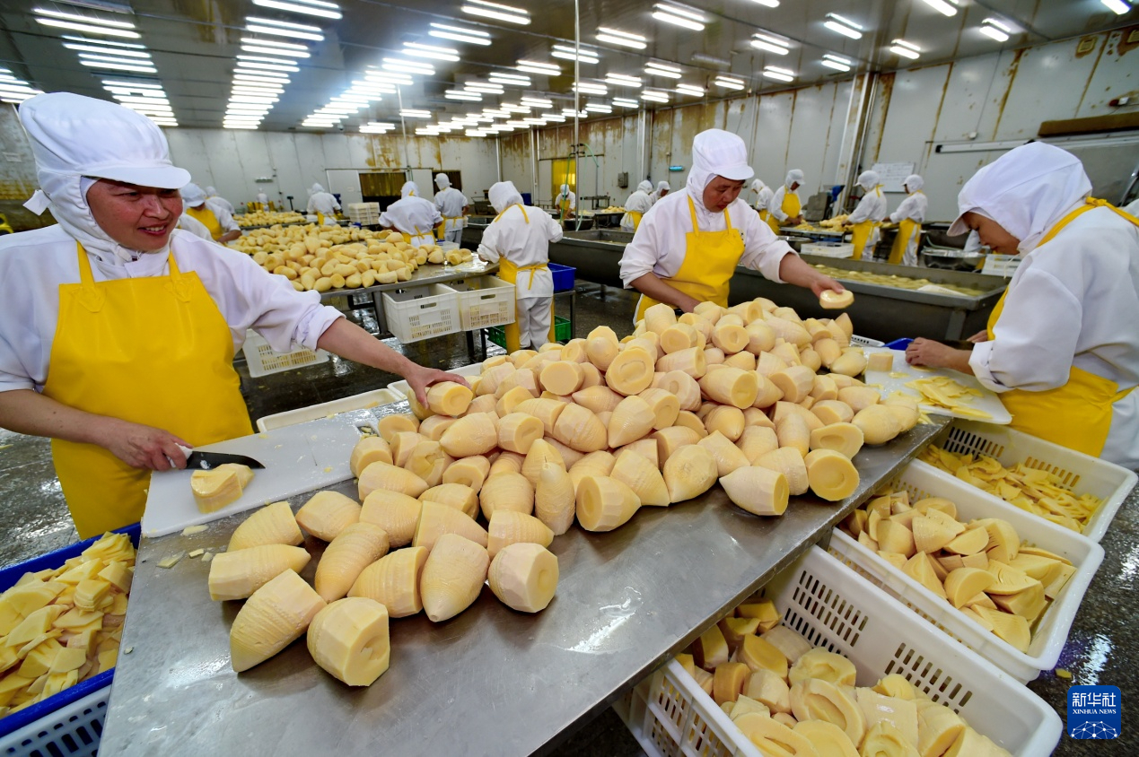 建瓯市一家竹笋加工企业的工人在加工水煮笋出口产品(资料图)。新华社记者 张国俊 摄