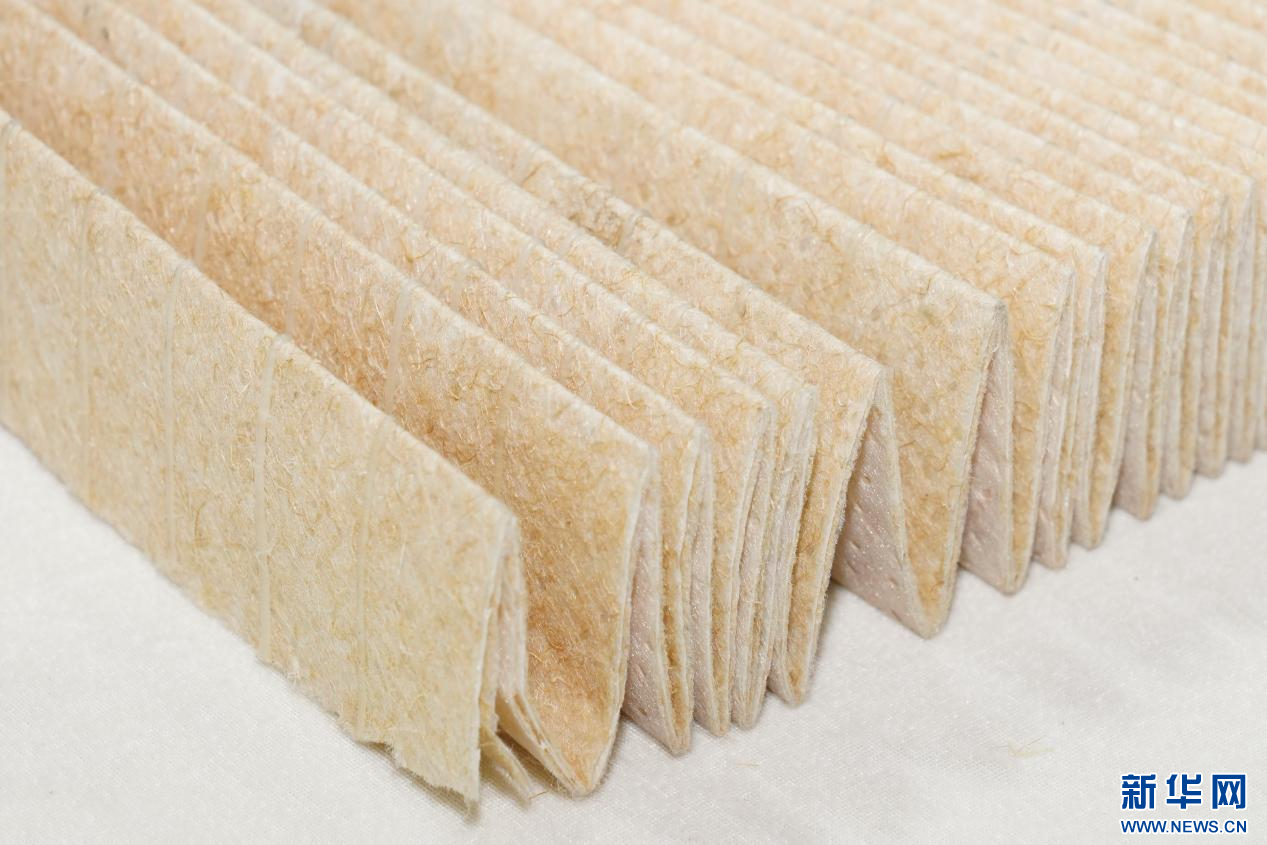 首届武夷竹产品展销会展出的竹原纤维做成的空调滤芯。新华网 肖和勇 摄