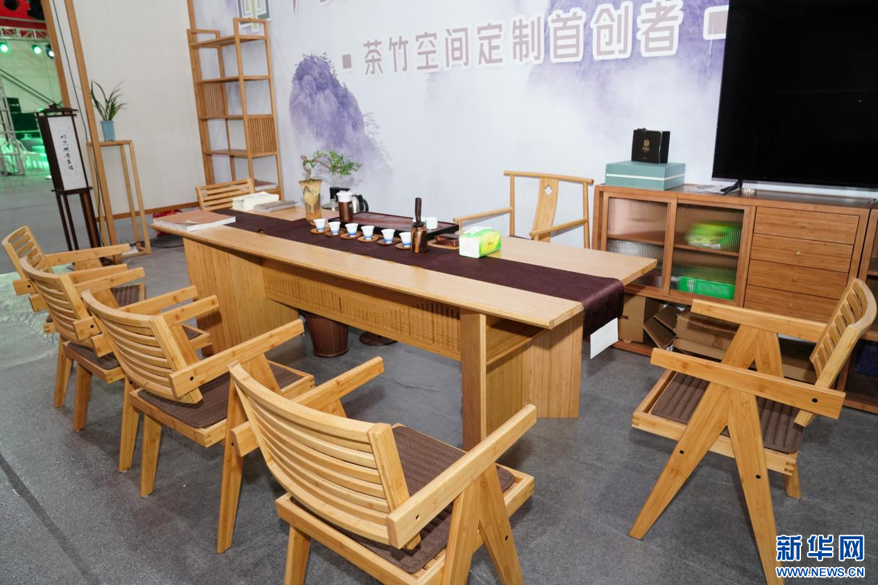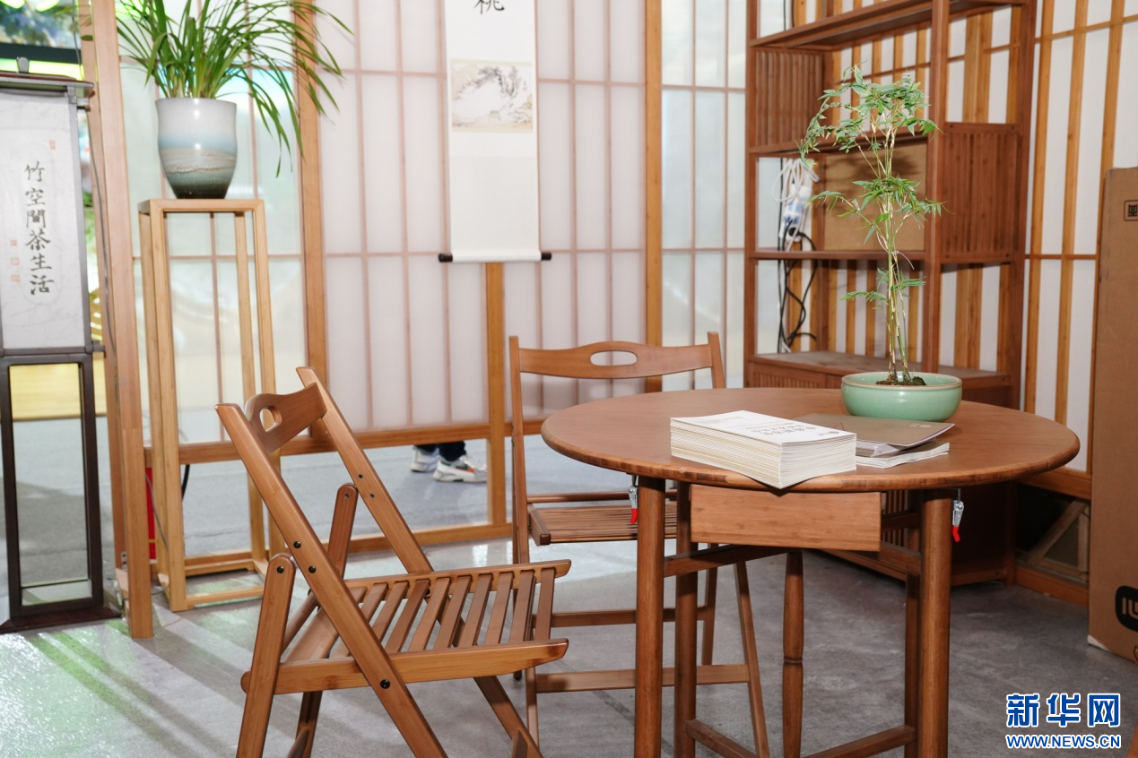 首届武夷竹产品展销会上的“竹空间茶生活”展示区。新华网 肖和勇 摄