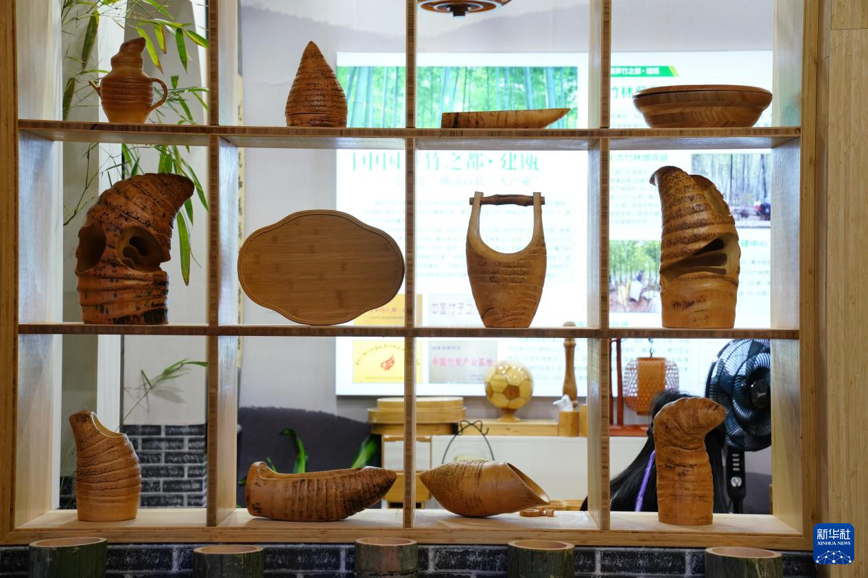 首届武夷竹产品展销会上的全竹“茶空间”展示区。新华网 肖和勇 摄
