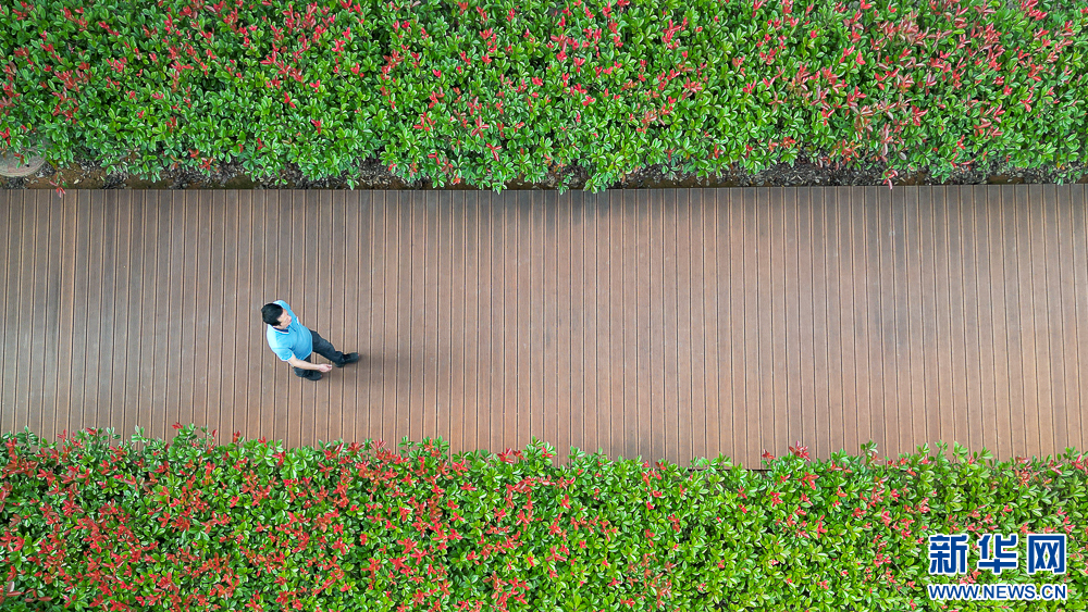 这是5月25日在福建大庄竹业科技有限公司拍摄到的重竹户外竹材地板(无人机照片)。新华网 肖和勇 摄