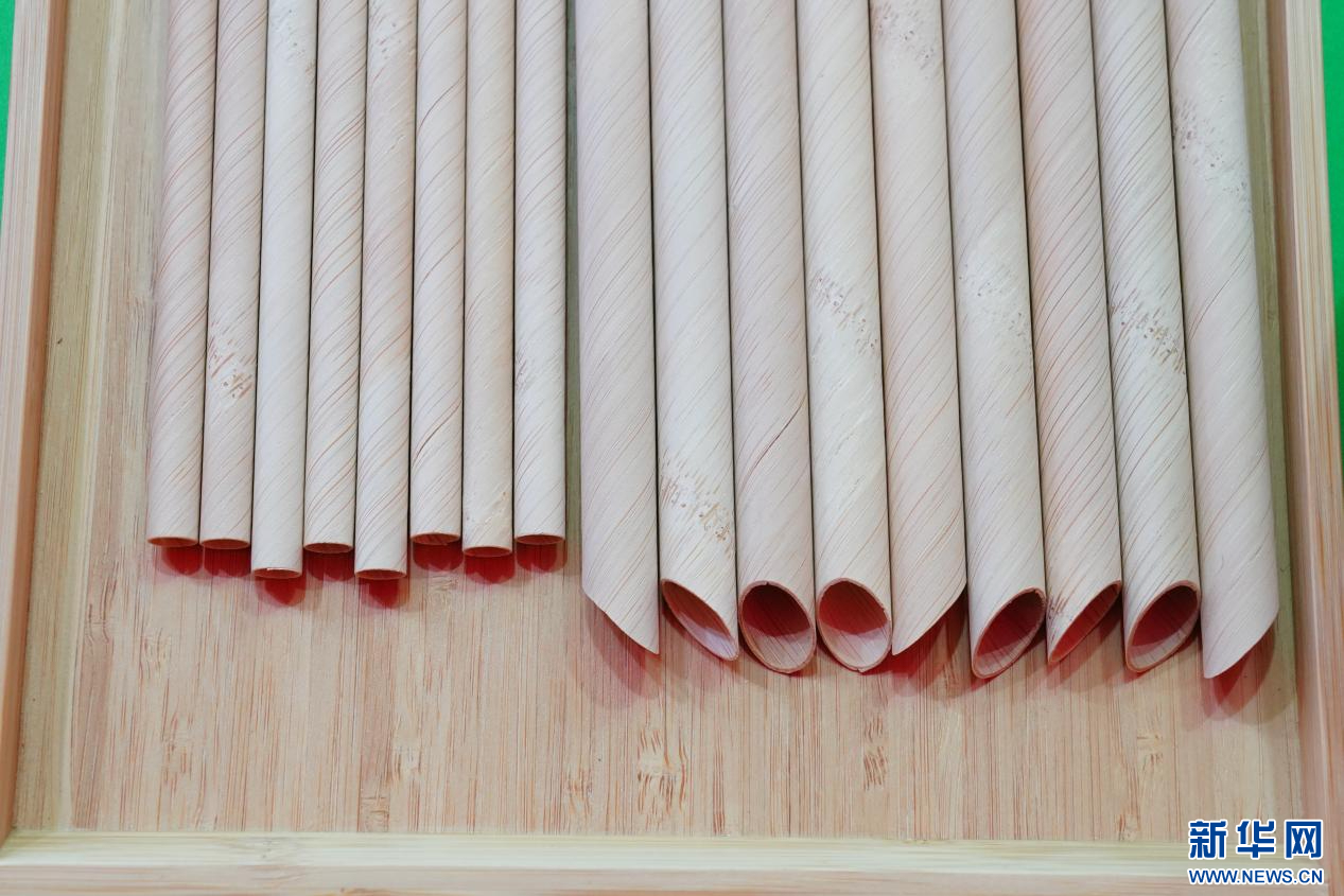 首届武夷竹产品展销会展出的竹吸管。新华网 肖和勇 摄