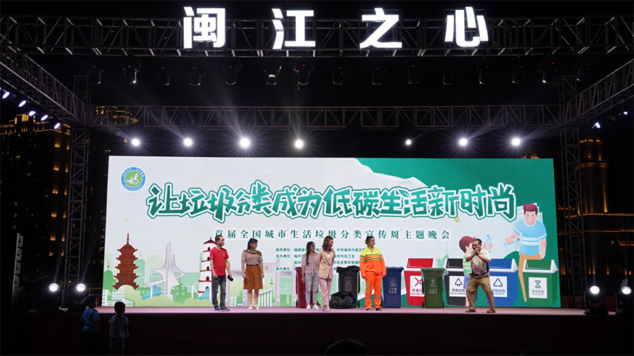 晚会上,晋安区选送的闽剧《分类情缘》,把城市生活垃圾分类新理念和国家级非遗闽剧相结合,让人耳目一新;福州市湖滨小学的孩子们带来精彩的京剧表演《垃圾分类京剧说》,号召垃圾分类从小做起;马尾区和福清市还分别以童话剧、快板表演的形式,将垃圾分类知识融入其中,宣传绿色低碳生活理念……当晚,闽籍举重奥运冠军邓薇也到场助阵,并向广大市民朋友发出垃圾分类倡议,倡导大家以绿色生产生活方式,推动全社会践行垃圾分类新时尚。