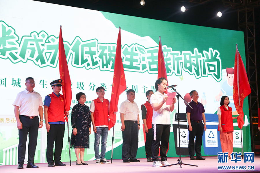 闽籍举重奥运冠军邓薇到场助阵,向广大市民朋友发出垃圾分类倡议。新华网发(许流钦 摄)