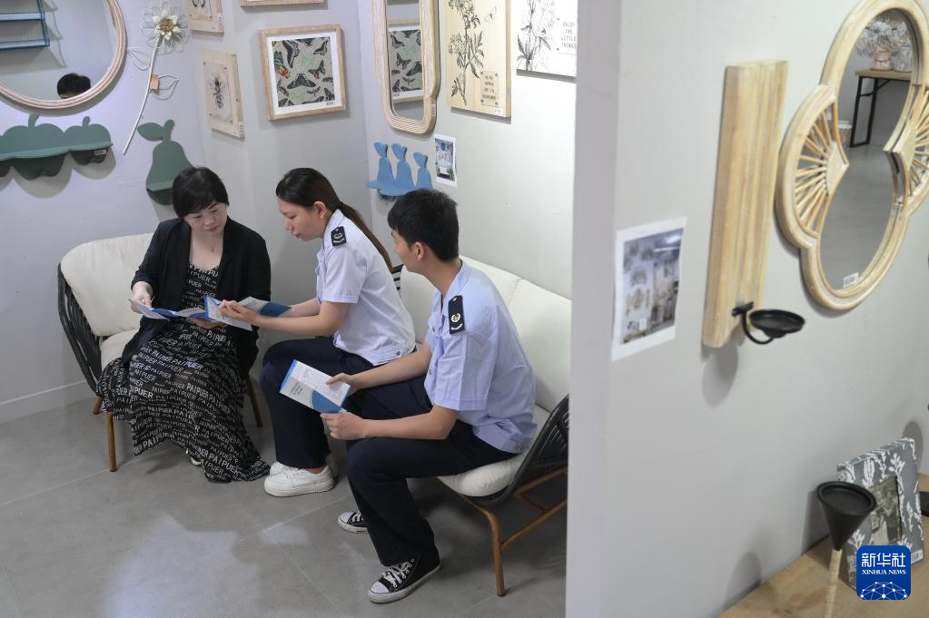 5月30日,工作人员在活动现场听取外贸企业代表(左一、右一)意见和建议,为企业答疑解惑。新华社记者 林善传 摄