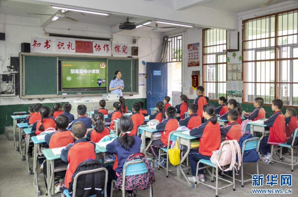 民警给学生上禁毒宣传教育课。新华网发(谢立东 摄)