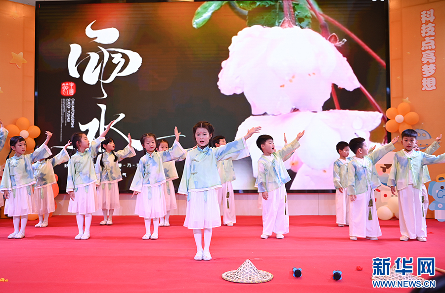 福州高新区实验幼儿园的孩子们在二十四节气手势舞表演中感受传统文化。新华网发(福州高新区实验幼儿园供图)