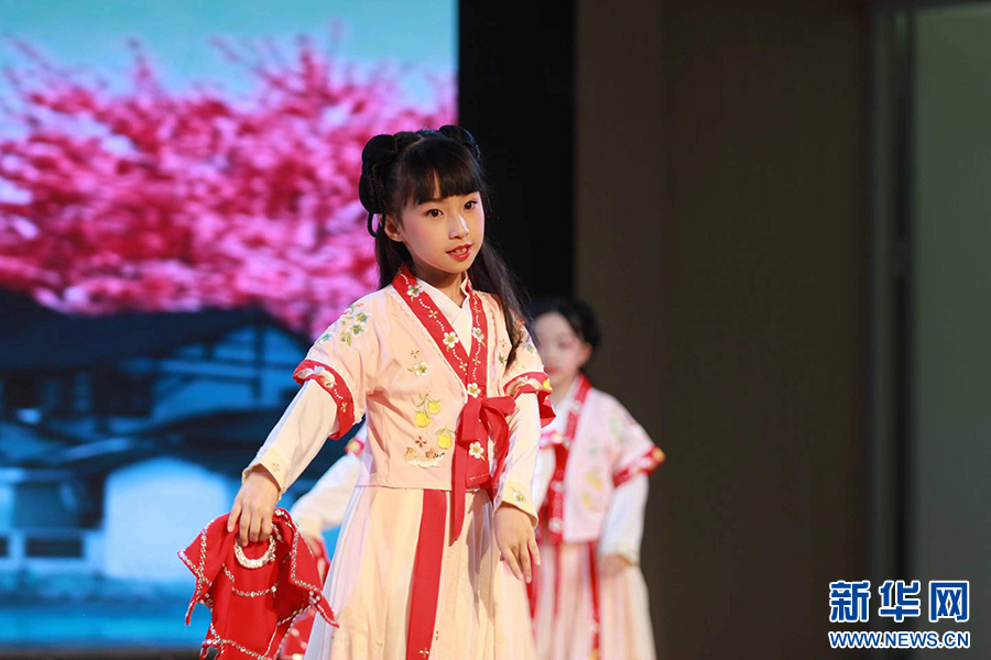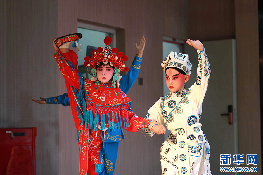 5月31日下午,福州教育学院第一附属小学闽剧社团的孩子们为大家演绎闽剧《踏春》。新华网发(福州教院一附小供图)