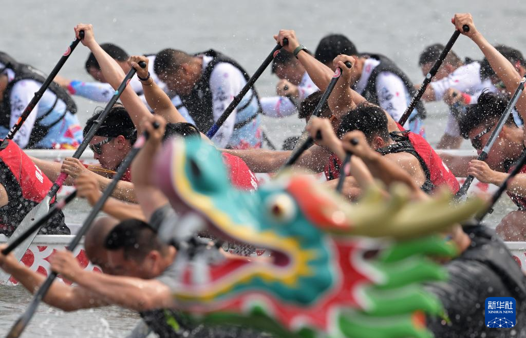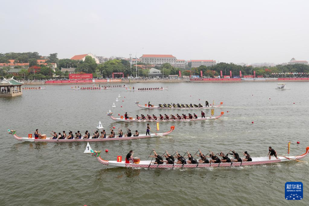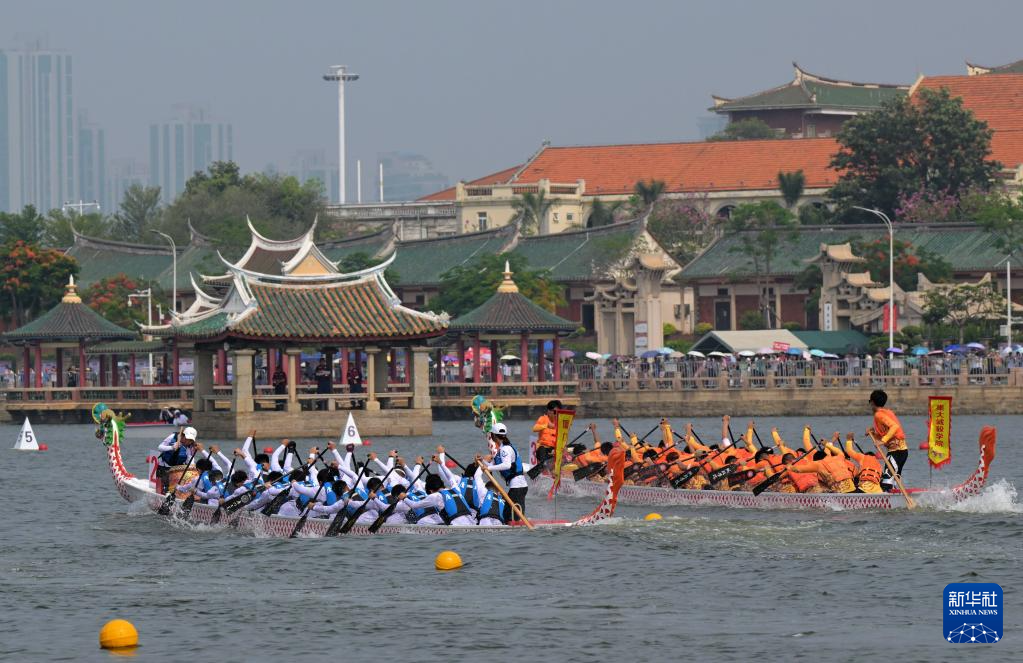 6月3日,在福建厦门集美龙舟池,来自海峡两岸的龙舟队竞渡争先。新华社记者 魏培全 摄