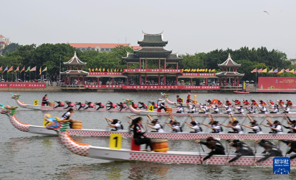 当日,2023海峡两岸(集美)龙舟文化节暨第十六届“嘉庚杯”“敬贤杯”海峡两岸龙舟赛在厦门集美龙舟池启幕。来自海峡两岸的47支龙舟队伍在竞赛中享受龙舟竞渡的活力、中华传统文化的魅力,共有约500名台胞参与赛事。