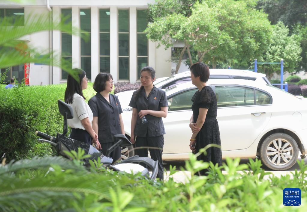6月8日,“茉莉姐姐”服务团队的几名成员:闽侯县青口镇妇联干部谢琳楠(左一)、福州市中级人民法院少年庭法官林菁菁(左二)、心理咨询工作者陈巧铃(右一)等探讨未成年受害者现状及后续跟踪帮扶目标。新华社记者 林善传 摄