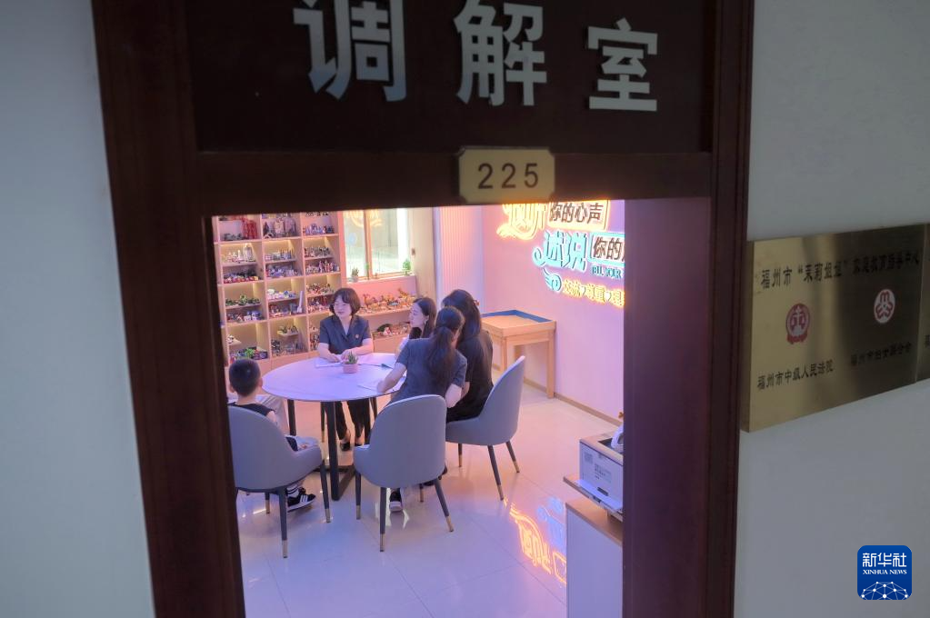 6月8日,服务团队成员在福州中院“茉莉姐姐”家庭教育指导中心为婚姻家事案件当事人进行调解和家庭教育指导。 新华社记者 林善传 摄