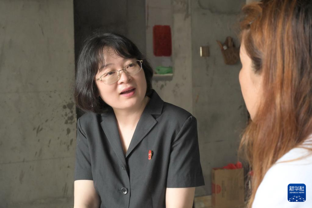 6月8日,“茉莉姐姐”服务团队成员、福州市中级人民法院少年庭法官林菁菁在一位未成年当事人家中向其母亲了解情况。