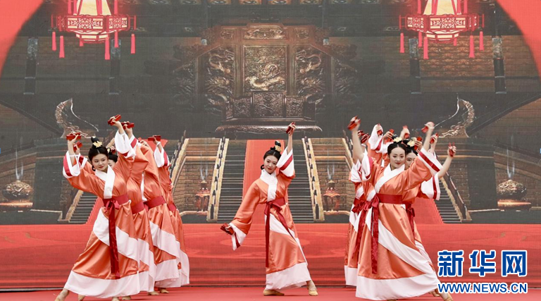 活动在《越人歌》《汉·乐舞》表演中拉开序幕,曲风古朴渲染,让人沉浸在悠悠古韵之中。新华网发(邱俊杰 摄)