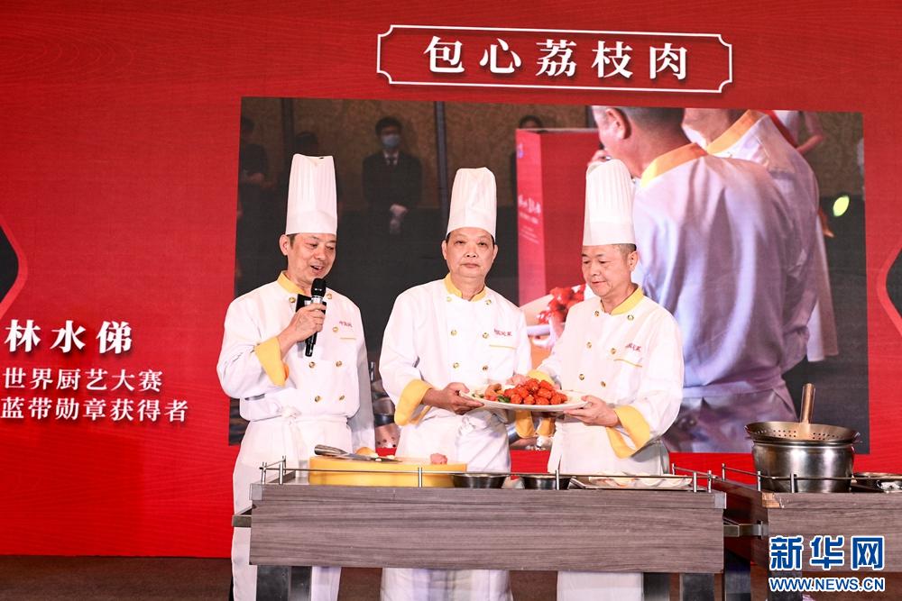 闽菜大师展示包心荔枝肉烹饪技艺。新华网发(主办方供图)