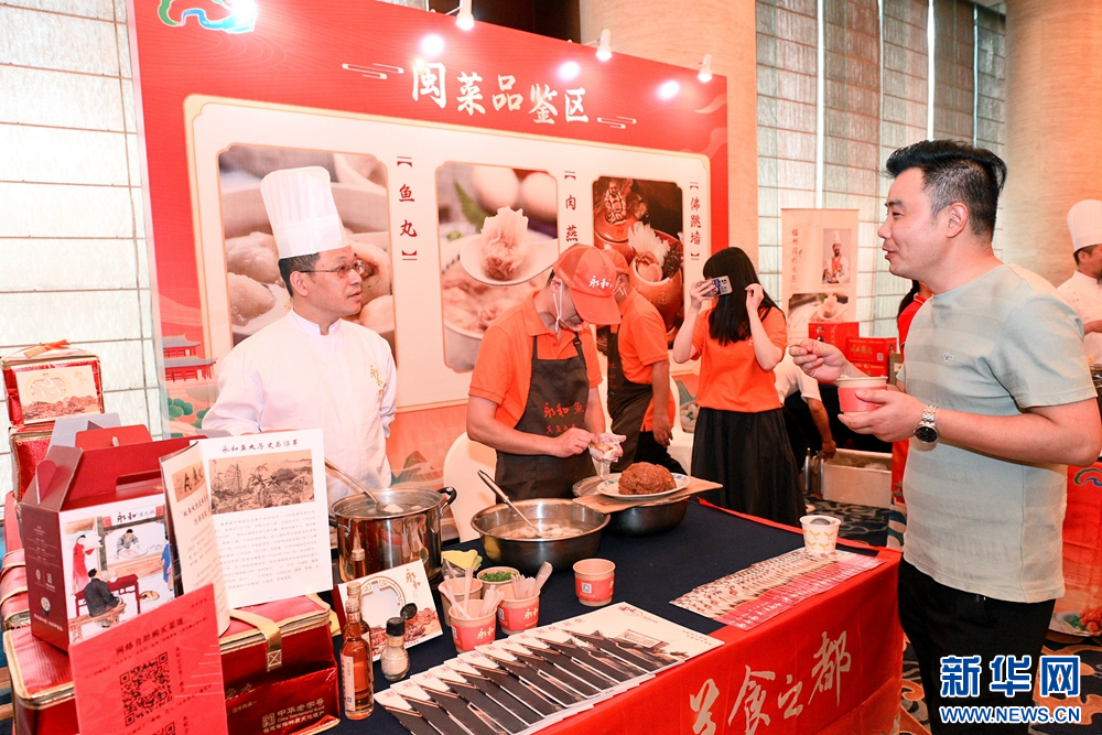 在福州本地美食品鉴和闽菜文化展区,永和鱼丸、同利肉燕、耳聋伯元宵、文儒闽菜馆芋泥等闽菜经典美食汇聚一堂。新华网发(主办方供图)