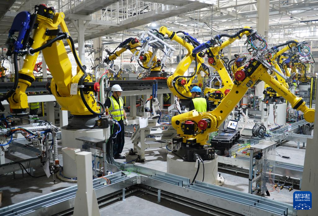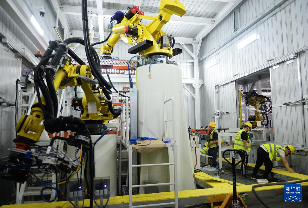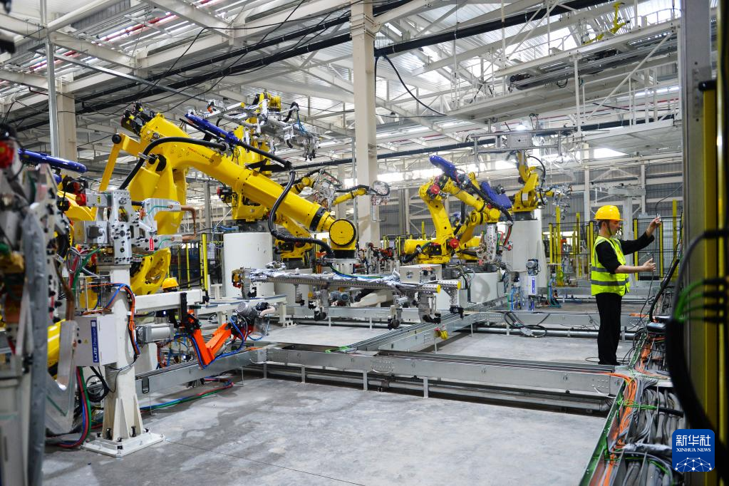 6月16日在东南汽车产线改造升级项目车间拍摄的智能化机械臂设备。新华社记者 刘勇贞 摄