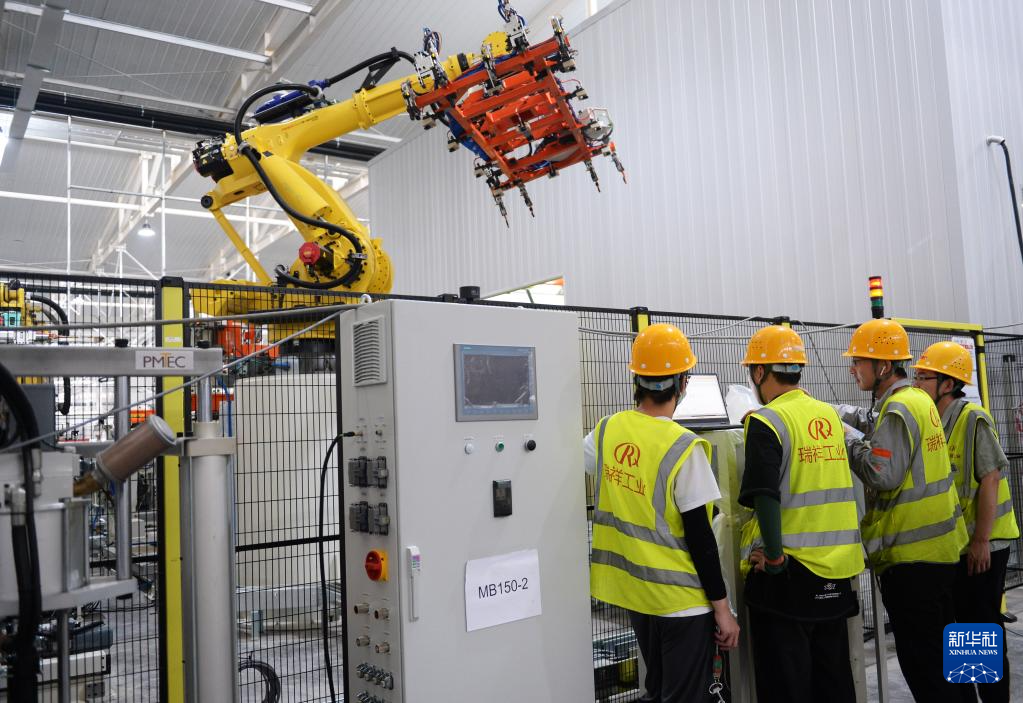 6月16日,在位于东南汽车城产业园区的东南汽车产线改造升级项目车间,工作人员在调试智能化设备。