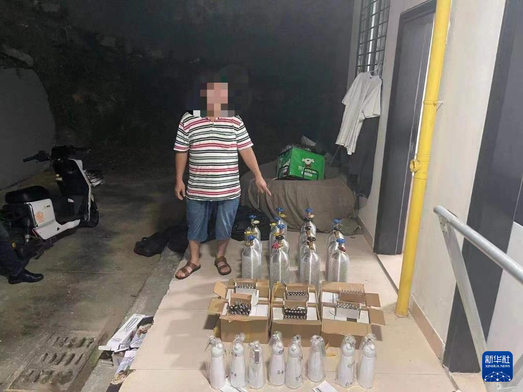 2022年6月,厦门警方在思明区查获“笑气”若干瓶。(厦门警方供图)