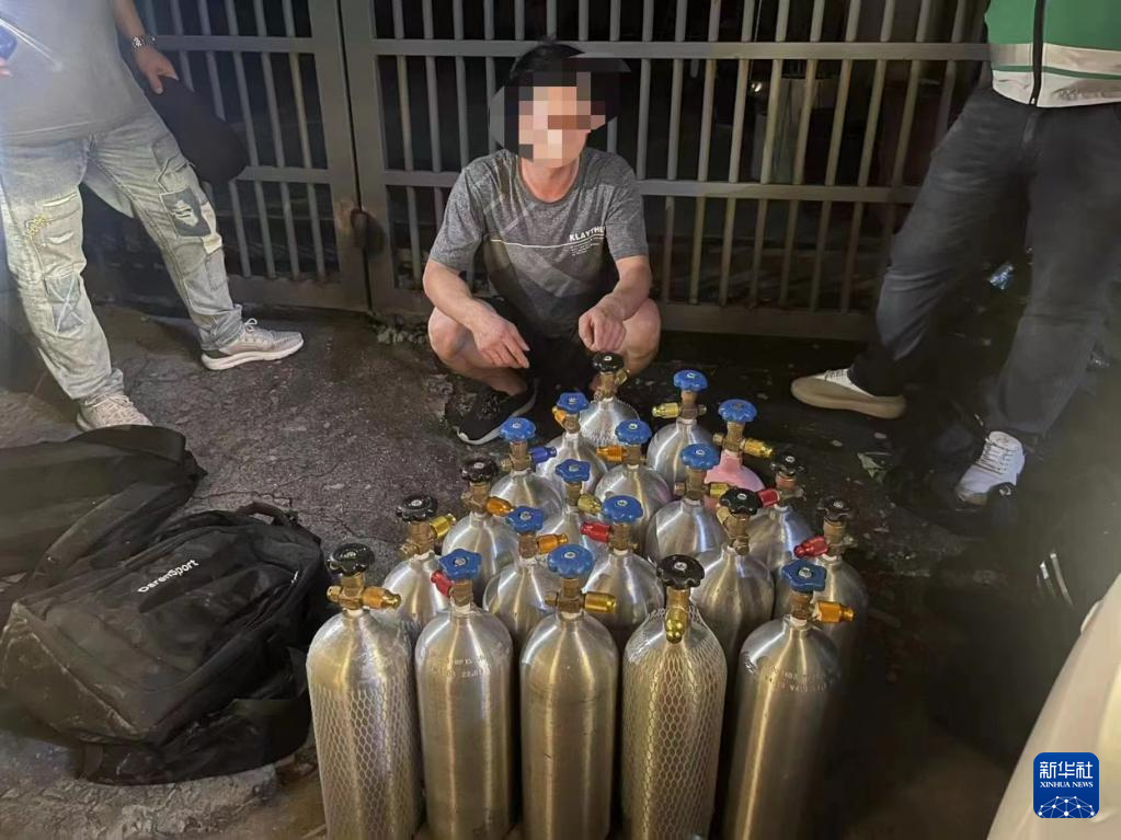 2022年6月,厦门警方在厦门市湖里区查获尹某林藏匿在货车上的中瓶“笑气”20瓶。(厦门警方供图)