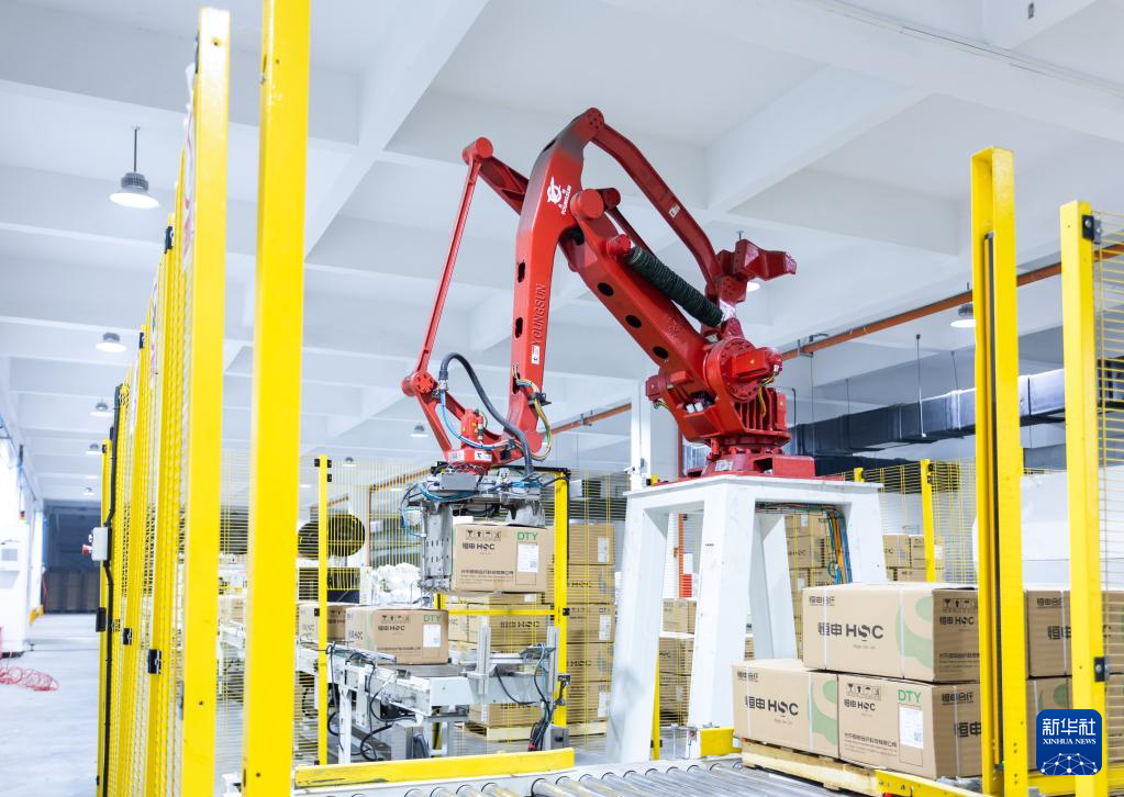 图为恒申集团的自动化包装车间。新华社记者董建国 摄