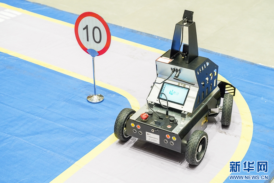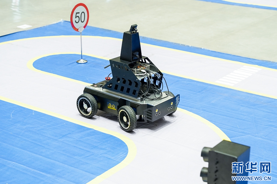 6月19日,无人车在弯道上行驶,进行限速识别验证。新华网 肖和勇 摄