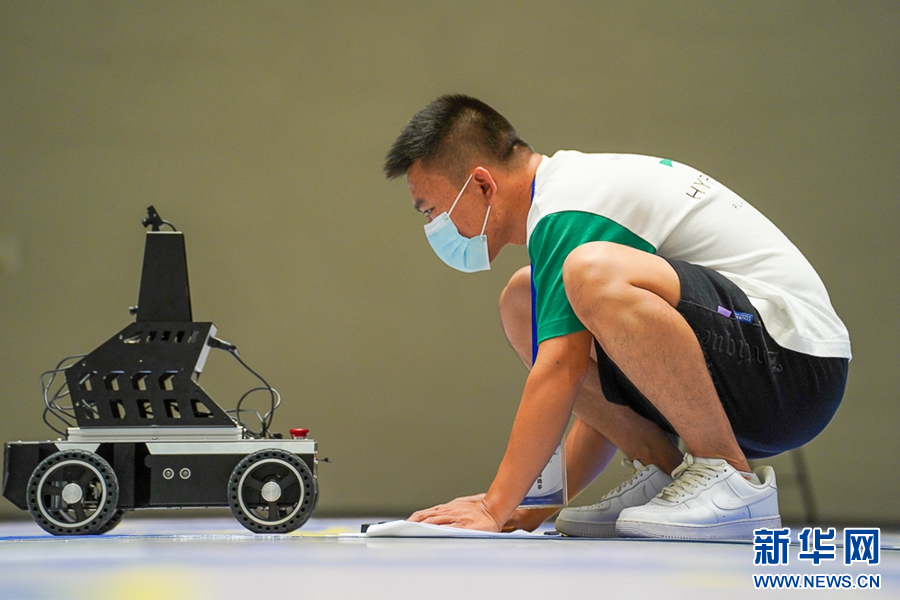 6月19日,一名选手对无人车进行数据采集。新华网 肖和勇 摄