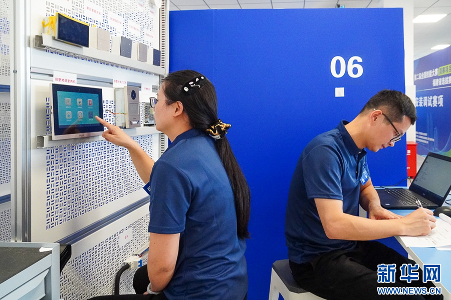 6月20日,选手完成智能家居故障检修和升级改造之后,在进行检查,撰写报告。新华网 肖和勇 摄