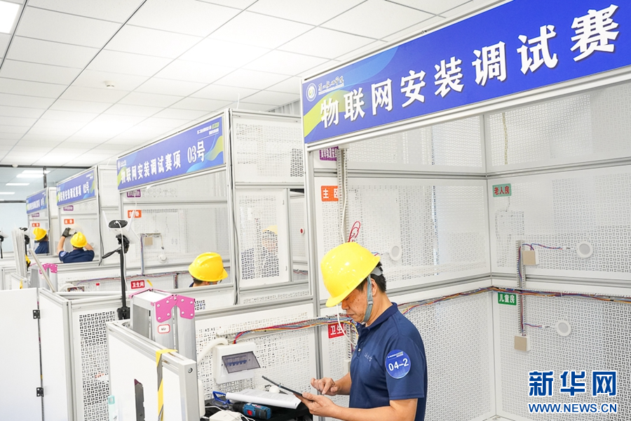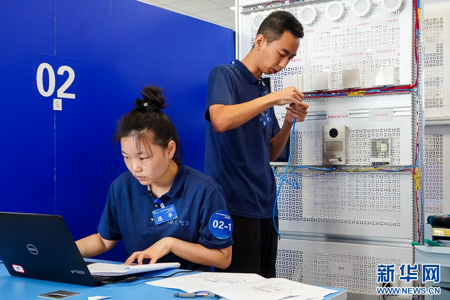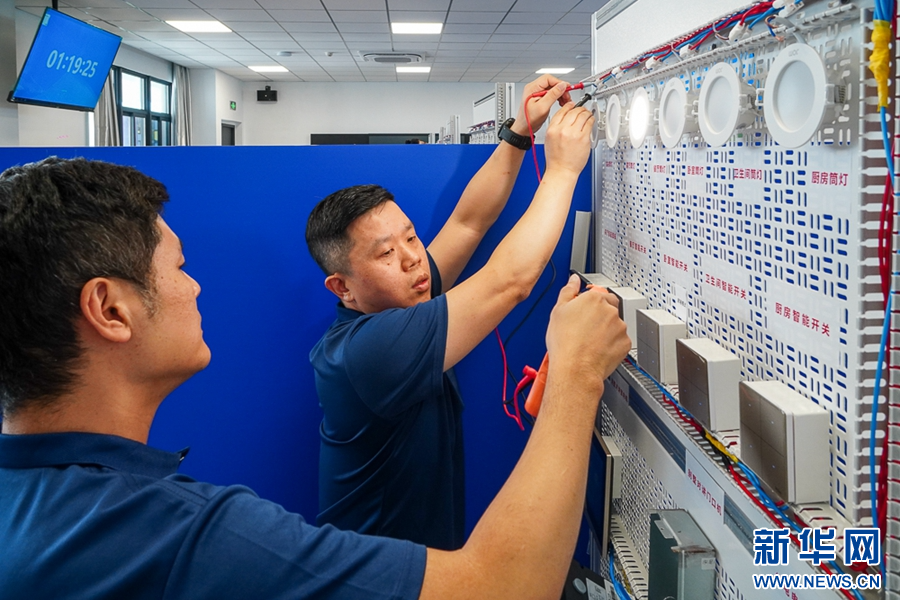 6月19日进行的物联网智能家居安装调试比赛现场。新华网 肖和勇 摄